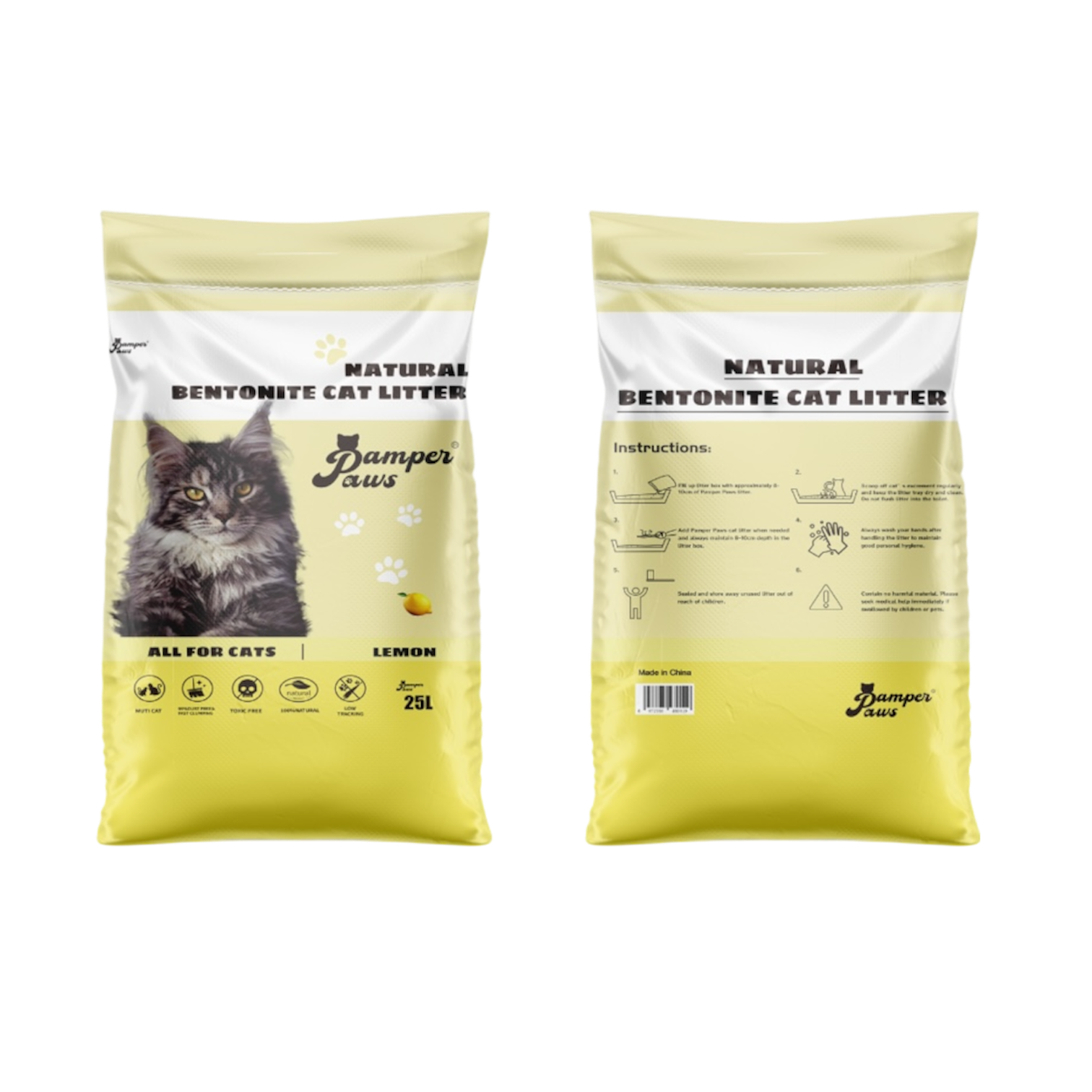 🐱 Pamper Paws Natural Bentonite Cat Litter – Lemon Fragrance (25L)